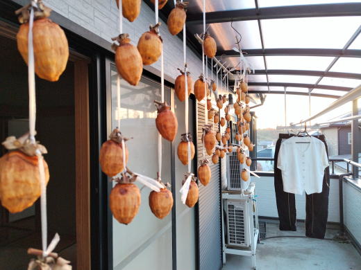 復帰第一日目の今日は、季節がら「干し柿」のお話です。 毎年、この時期になると四国の今治の農家さんから渋柿を送っていただき、ベランダの軒下にシャツや靴下の干しものと肩を並べて干し柿作りをやっています。 今年は先月20日に到着、即日皮むきと吊るしの作業。寒風と言うより膝関節の痛みが身に沁みました。あと5日程で食べごろかなぁ。みんなの笑顔が見たいです! |