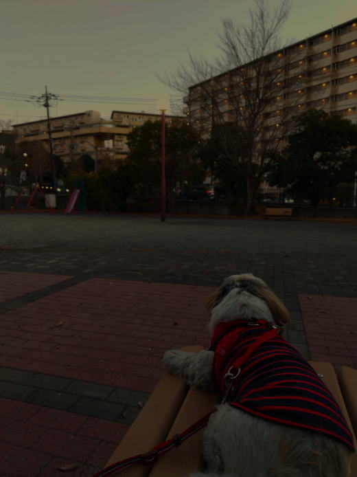 | 12月 6日(土) 寒い、寒い、寒い 予報がそうなっていたので身構えていましたが、いざそうなってみると”寒~い!”。朝、夕とも30~1時間繰り下げたり繰り上げたり夏、冬時間で散歩の開始時間を変えるのですが、それでも追いつかない。 今日も4時から出かけた夕方散歩。太陽が沈むと途端に冷え込むこの時期の外気温、乾燥も在ってひりひりするような寒さが襲ってきます。なのにナナときたら毛皮を着ているものだからへっちゃら。いつもどうりに公園のベンチに寝て観察タイム。 勘弁して!! |